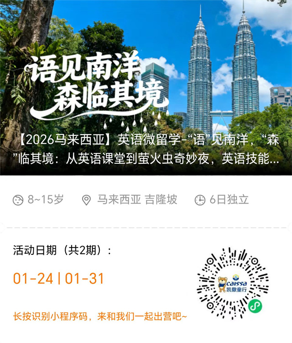 「亚洲游学」2026马来西亚“语”见南洋,“森”临其境探索冬令营(6天)世界课堂的践行