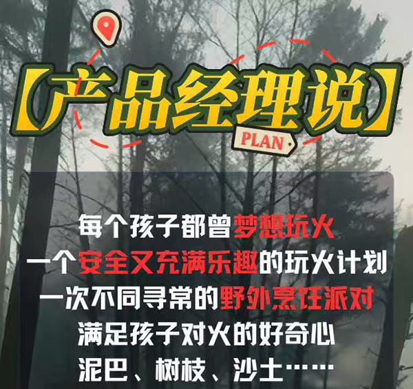 理念:“玩火”野食课堂充满乐趣,又符合孩子学习特点。不能因为我们觉得这是“危险”的东西,就切断孩子探索的机会,孩子们是充满好奇心的,越不让他触碰的东西,他可能越会去触碰。反而在孩子能力范围内的小“冒险”,应该让他们去尝试、去体验,孩子见识过什么是危险,才能更好的防范危险。