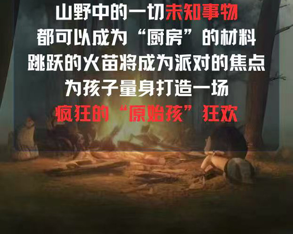 山野中的一切未知事物,都可以成为“厨房”的材料,跳跃的火苗将成为派对的焦点,为孩子量身打造一场,疯狂的“原赠孩”狂欢。