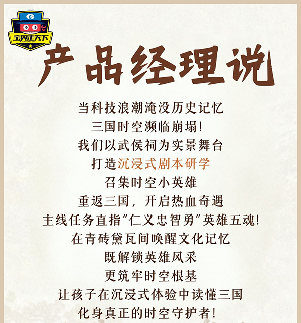 穿越回三国时期的成都,肩负守护历史的重大使命!一场穿越千年的文化探索,一次与三国英雄对话的深度体验,从此刻向“历史遗忘”说再见!