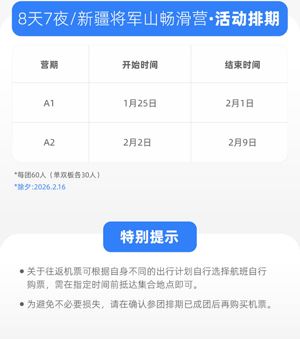 「新疆滑雪」2026将军山进阶畅滑冬令营(8天)滑进滑出高效训练