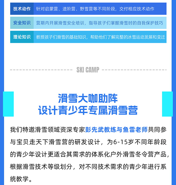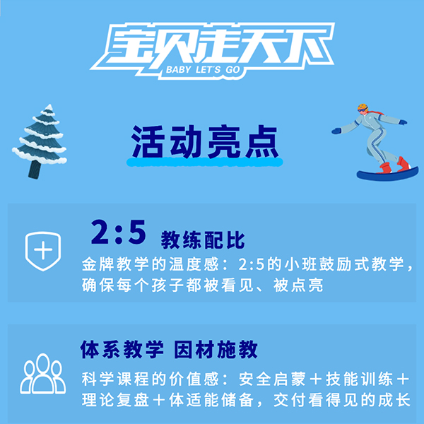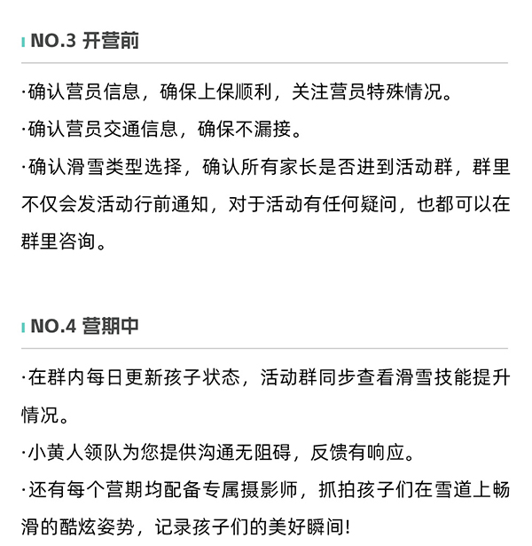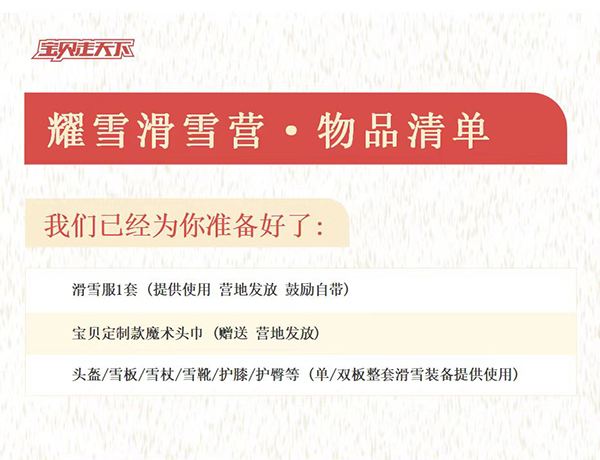 配备专业滑雪教练、贴心小黄人领队、摄影师全程跟拍服务,为“滑雪少年”助力。总配备到达1:2.行业内高师资配比,出发前7天,全额无忧退款