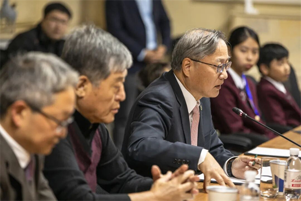 张建国大使指出,青少年是祖国的未来,公共外交事业未来的发展需要青少年一代茁壮成长,需要历史、文化、语言等大量的知识积累和交流实践。他结合自身丰富的外交经历并以察哈尔学会参与的公共外交和国际交流项目为例,生动解读公共外交在促进国家间理解、化解认知差异中的重要作用:“公共外交不止于官方对话,更在于通过民间交流、文化传播等多元方式,让世界了解真实的中国,也让中国更好地融入世界。”