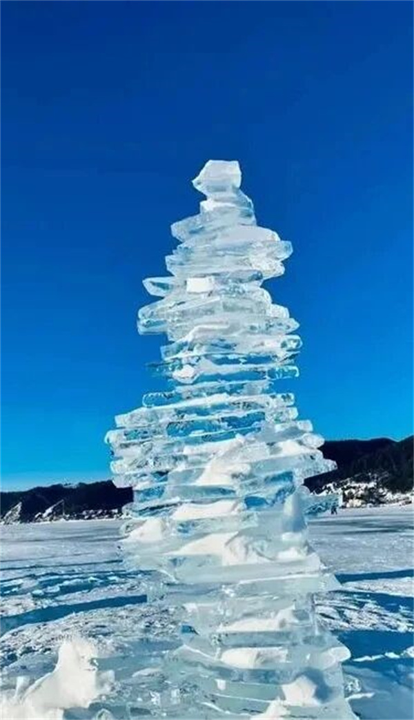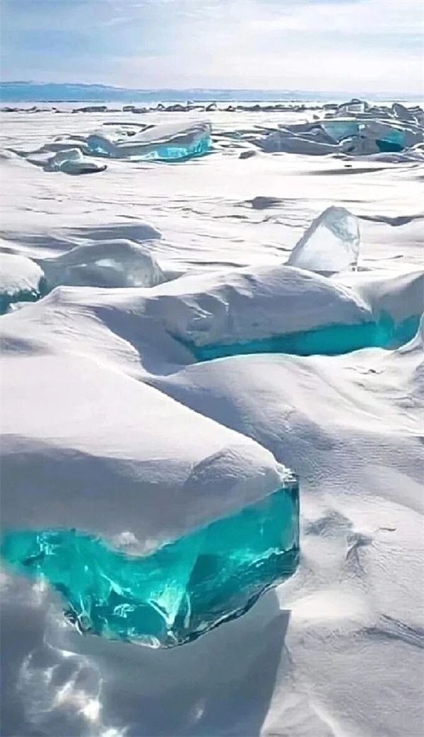 贝加尔湖的冰为何如此湛蓝?原来,这里的冰非常纯净,在漫长严寒中,冰层变得致密坚硬,内部气泡逐渐减少。当光线穿过时,波长较长的红橙光直接穿透,而波长短的蓝光被散射,于是我们看到了梦幻的蓝色。