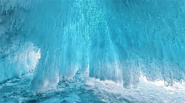 在贝加尔湖上,有许多神秘的冰洞。但请注意,这不是每年都能看到的景象!贝加尔湖的冰洞的形成需要特定的气候条件。每年冬季强烈的风暴会向洞穴注入大量降水,水汽在零下的温度中立即凝结,从而形成令人惊叹的冰洞!