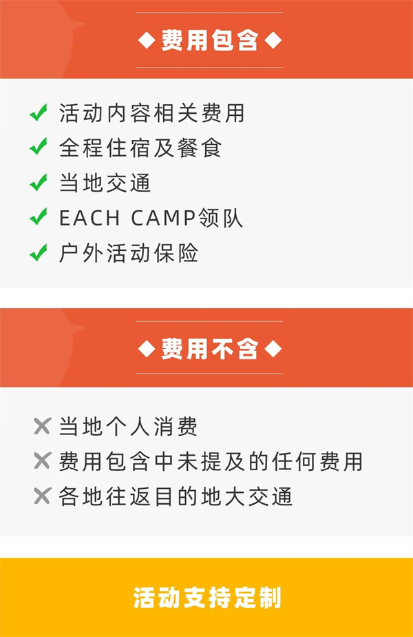 集合信息:亲子活动为当地集合解散,活动当天抵达即可,航班不做推荐,开营当天含晚餐,结营当天含午餐~