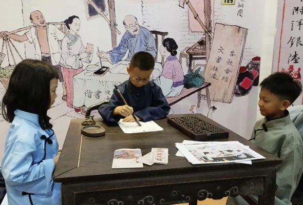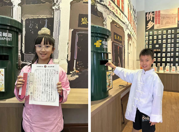 最后使用复刻的侨批信纸,写下此次探寻之旅的所思所获,或者记录对父母家人的深情寄语,也可以写给未来自己一份承诺。最后,亲手在信封上盖上传统的批局印章,庄重地将其投入特制的邮筒之中。