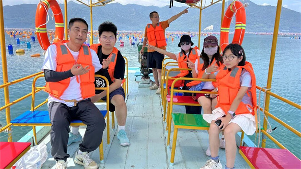 登上漂浮于海湾的传统渔排,换上装备,我们今日的“渔民”生涯正式开启。经验丰富的老船长带领我们,乘船驶向外海,展开最激动人心的环节——拖网捕鱼!