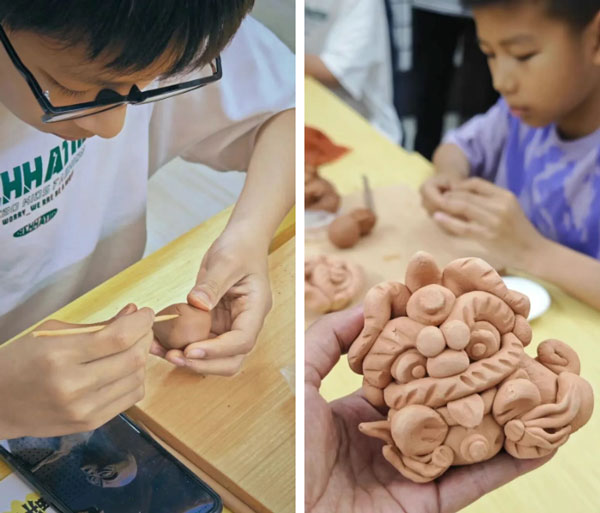 我们屏息凝神,学着非遗传承人的样子,将手中的泥团慢慢塑出轮廓。指尖的温度,让冰冷的泥土渐渐苏醒。再用小竹刀细心雕琢,贴上精心捏制的衣带、发髻...一点点看着泥巴在自己手中变成可爱的小物件,成就感爆棚!