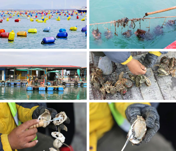 这极致浪漫的景致,其实也是为了生蚝养殖。生蚝生长在水下约2米的清澈世界,每一个彩色浮球的下面都系着长长的绳索,垂入海中,绳索上则附着着一只只正在努力生长的生蚝苗。这片看似静止的彩色海面之下,实则是一座充满生命律动的 “深海牧场”。