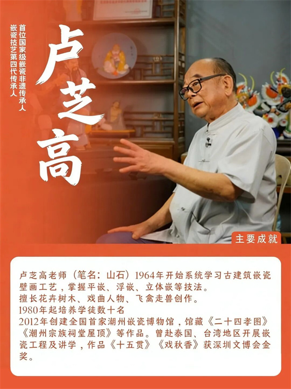 围坐在非遗传承工坊,嵌瓷博物馆创始人、国家级非遗传承人——卢芝高老师为我们揭开嵌瓷百年不褪色的奥秘。这些破碎的瓷片如何在手中涅槃重生,拼接出永不褪色的神话呢?