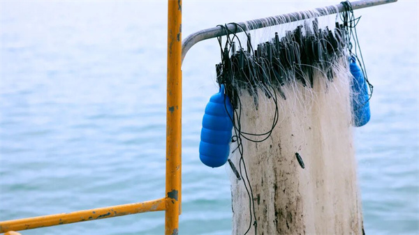 我们合力将一张长达百余米的细眼渔网缓缓放入海中,渔网的两端由长绳牵引,沉子使之下坠,浮子令其上浮,随着渔船前进在深海中悄然围捕。同时,老渔民会用长竹竿或木桨,有节奏地捶打船舷外的海面。捶打产生的震动与声响能够有效地惊吓、驱赶鱼群,使它们更加集中地向渔网中心区域游动!