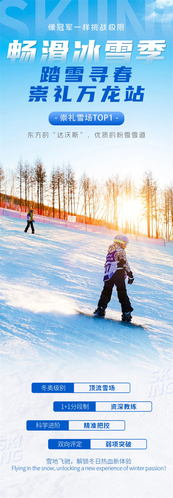 启用【踏雪寻春】滑雪学院原班师资团队,教练多年从事儿童滑雪教学,对6-14岁儿童有丰富的滑雪教学经验。