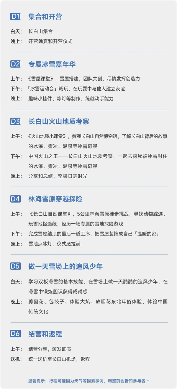 从2016年第一次走进长白山,至今,坚果部落已经连续10年在长白山开设冰雪远征营,经历10年迭代更新,这是我们最经典的冬令营,也是孩子们最爱的冬令营。