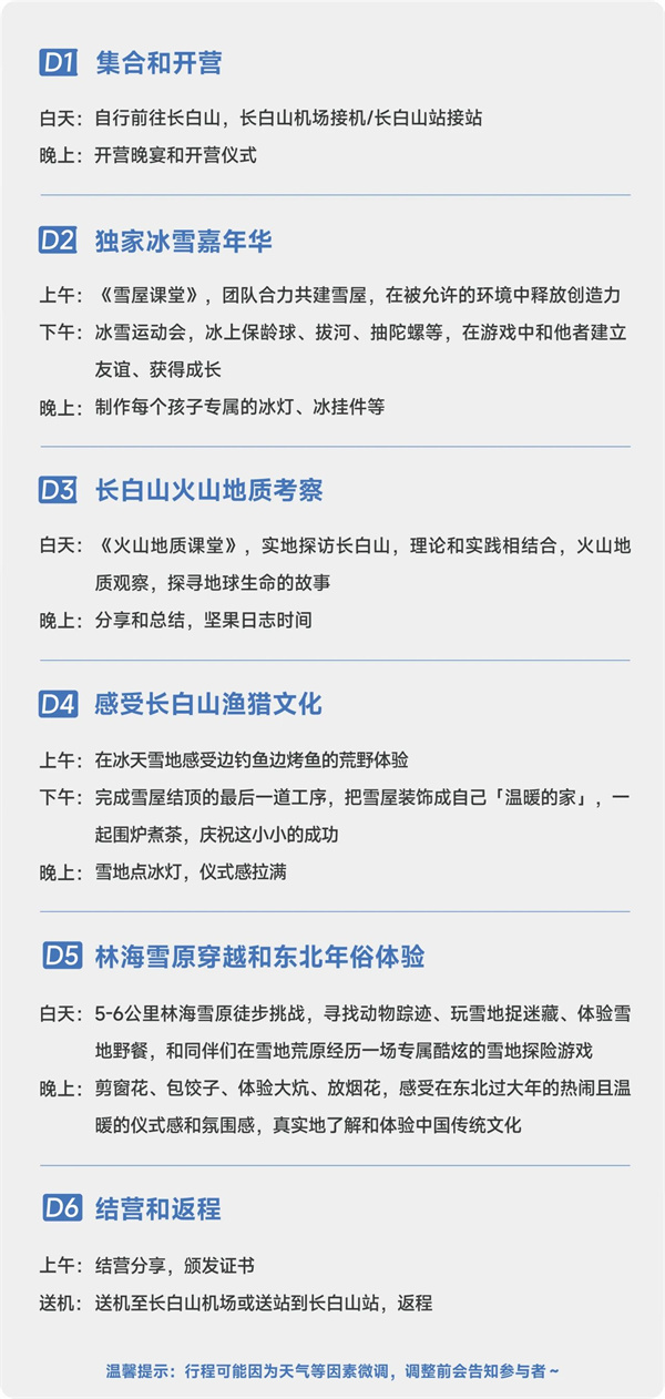 九年过去,50多期冬令营在这里开展,我们见证了这片土地的变迁:从最初交通不便,到如今机场通航、高铁通车,长白山正一点点被更多人看见,而我们,也在这过程中不断打磨、精进属于孩子的冰雪课程。
