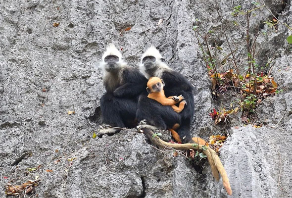 清晨,当初升的阳光洒向峭壁,白头叶猴家族陆续从岩洞中苏醒。金黄色的幼崽紧紧依偎在母亲怀中,成年的猴群在树梢间轻盈跳跃。在这片保存完整的季雨林里,1829种植物共同构筑了一个立体的生命乐园——每一片绿叶都在诉说着生存的智慧,每一处石缝都见证着生命的坚韧。