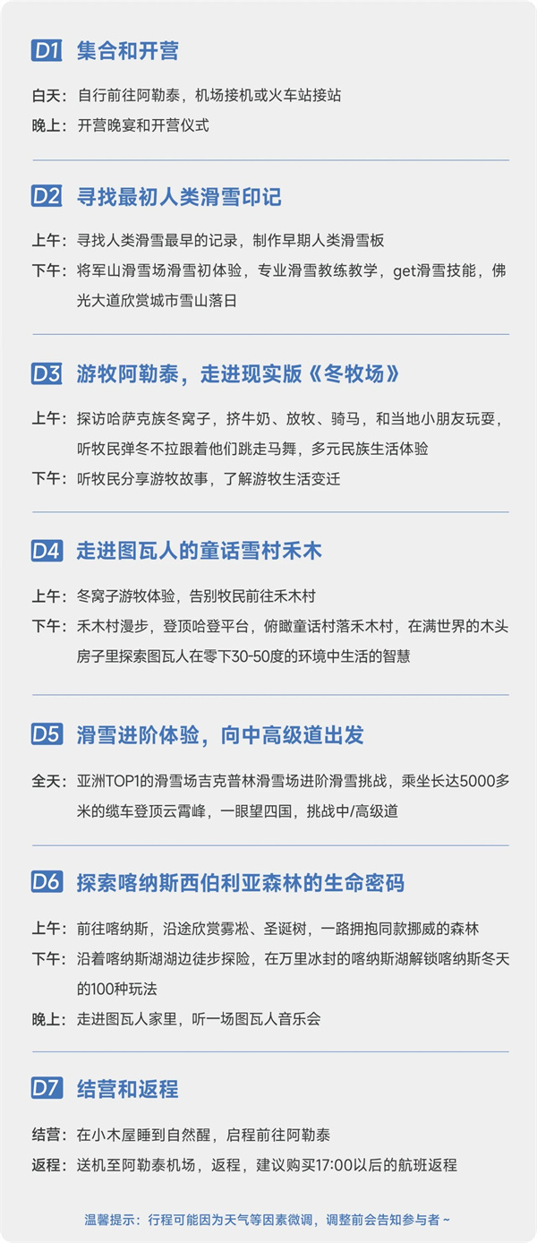 具体营期以报名页为准,接受除夕及其他时间营期定制