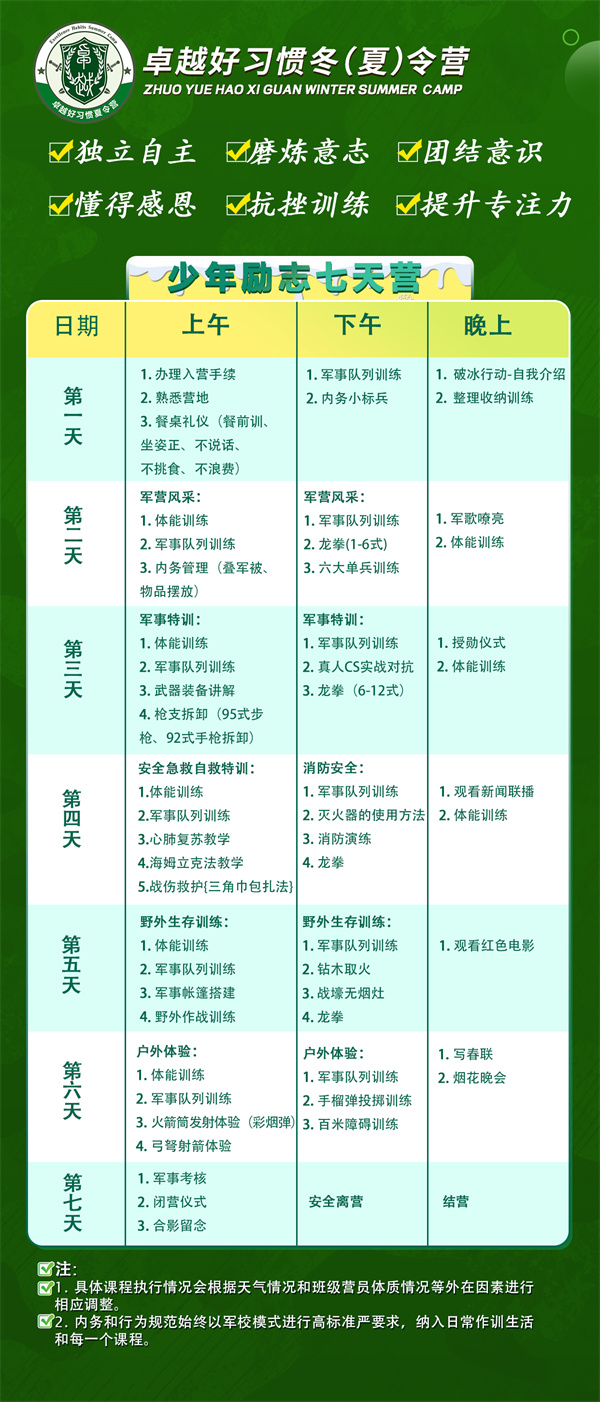「浙江军事」2025温州成长卓越好习惯冬令营(14天)自立自强、挑战自我。