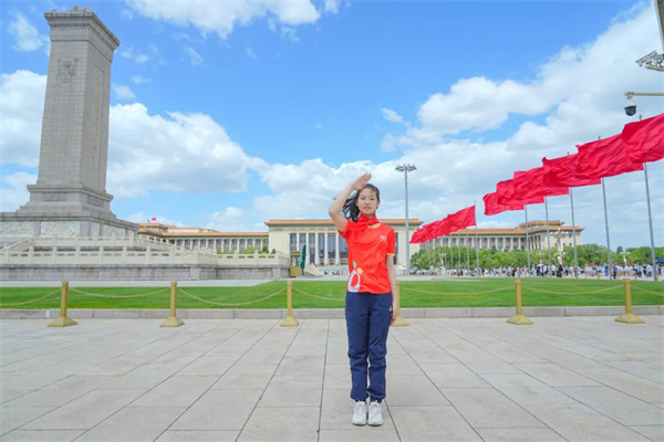 天安门广场上,五星红旗迎风招展,悬挂着毛主席画像的天安门城楼、人民英雄纪念碑和人民大会堂跃出课本,在阳光下熠熠生辉,正如我们心中对祖国永不熄灭的自豪和骄傲。