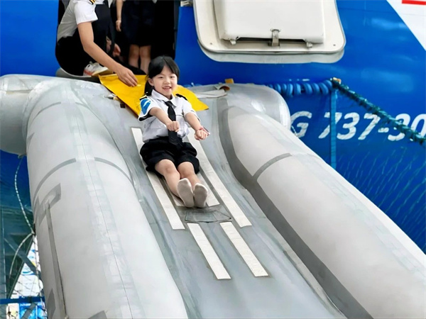 亲身体验应急滑梯撤离,水上迫降撤离,是航空安全教育中的关键环节,让孩子们在紧张刺激中学会冷静面对。在模拟真实的场景中掌握宝贵的生存技能,为飞行安全增添一份保障!