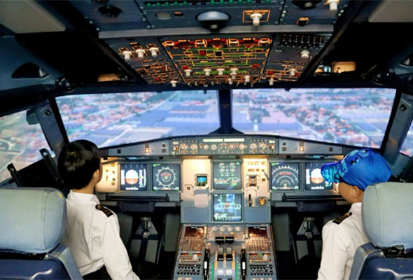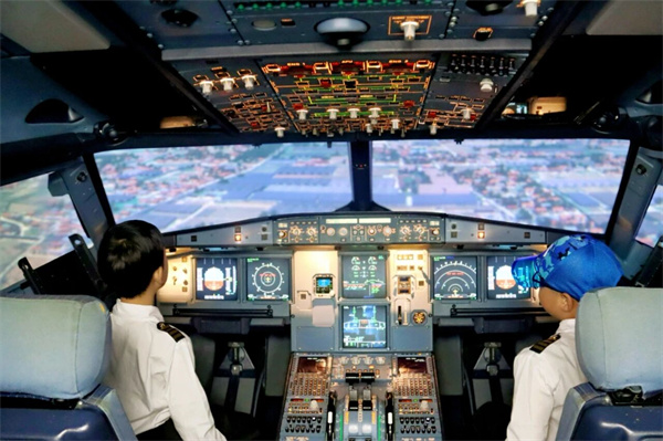 飞行员训练的模拟飞行舱是按照真实飞机驾驶舱1:1比例打造,高度还原每一个细节。