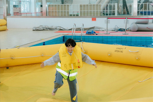 乘务员训练同款撤离滑梯和水上迫降练习: