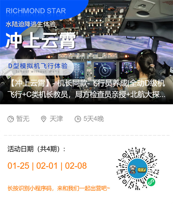 「天津航空」2026冲上云霄飞行员训练冬令营(5天)全动D级机飞行、C类机长教员