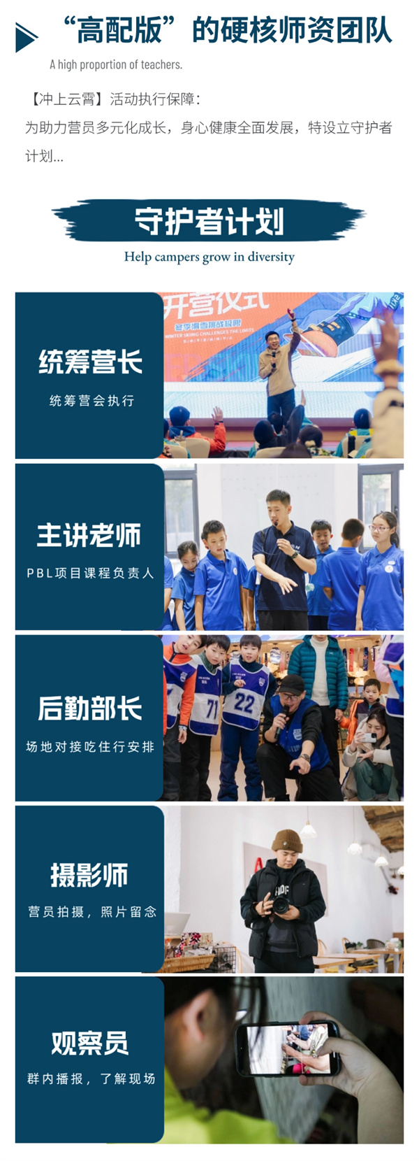 1、全营由专业户外精英领队带队,启发式引导,帮助宝贝全程自我管理,呈现全新的自己,全面照料营员营期生活。