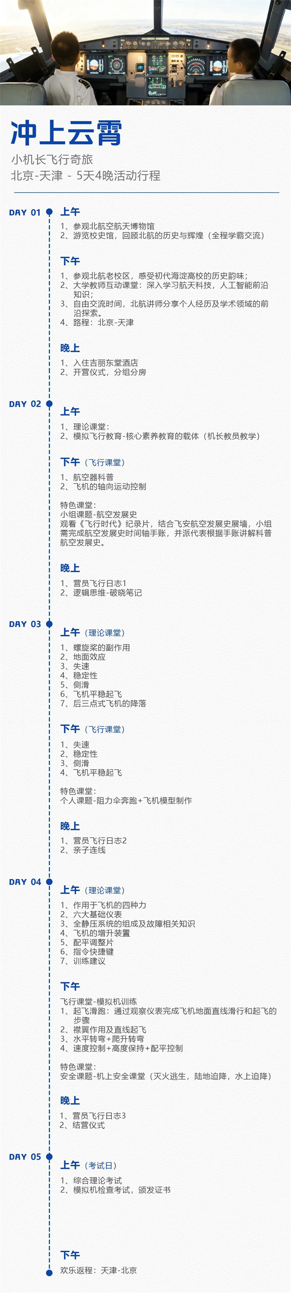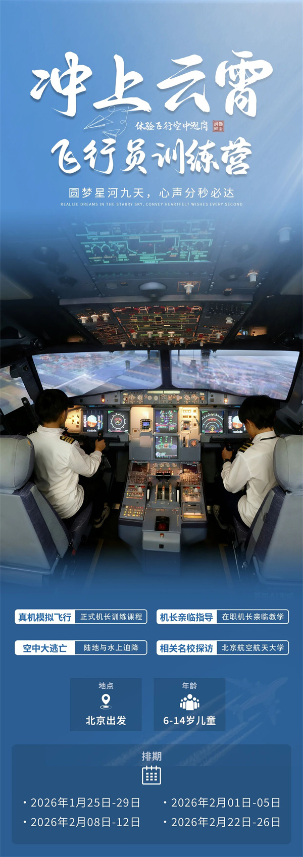 本次活动我们联合在职机长教员,依托飞机驾驶员执照考试大纲及飞行员学习考核的专业课程教学体系,全面启动【冲上云霄专项系列课程】,助力对航空航天感兴趣的营员规划未来职业道路。