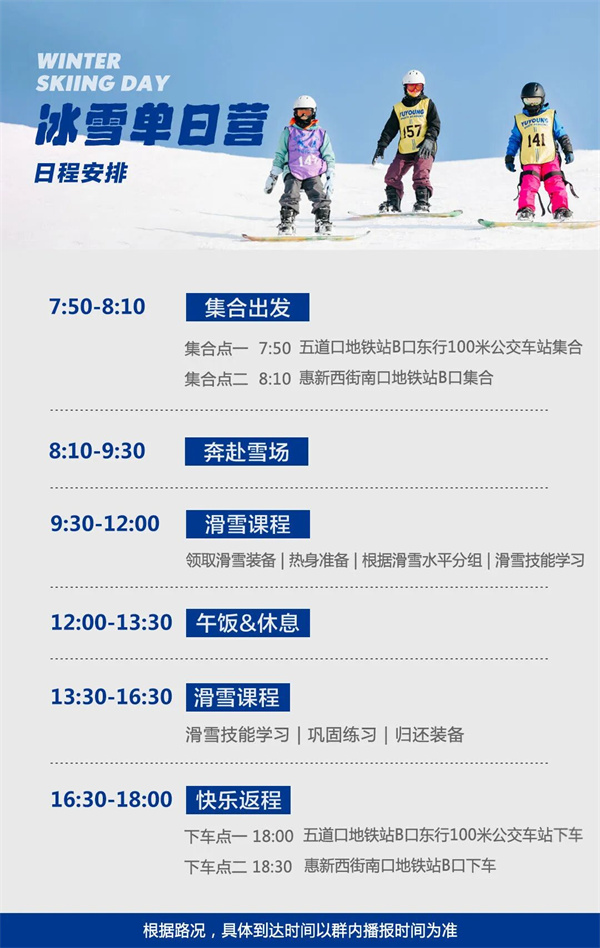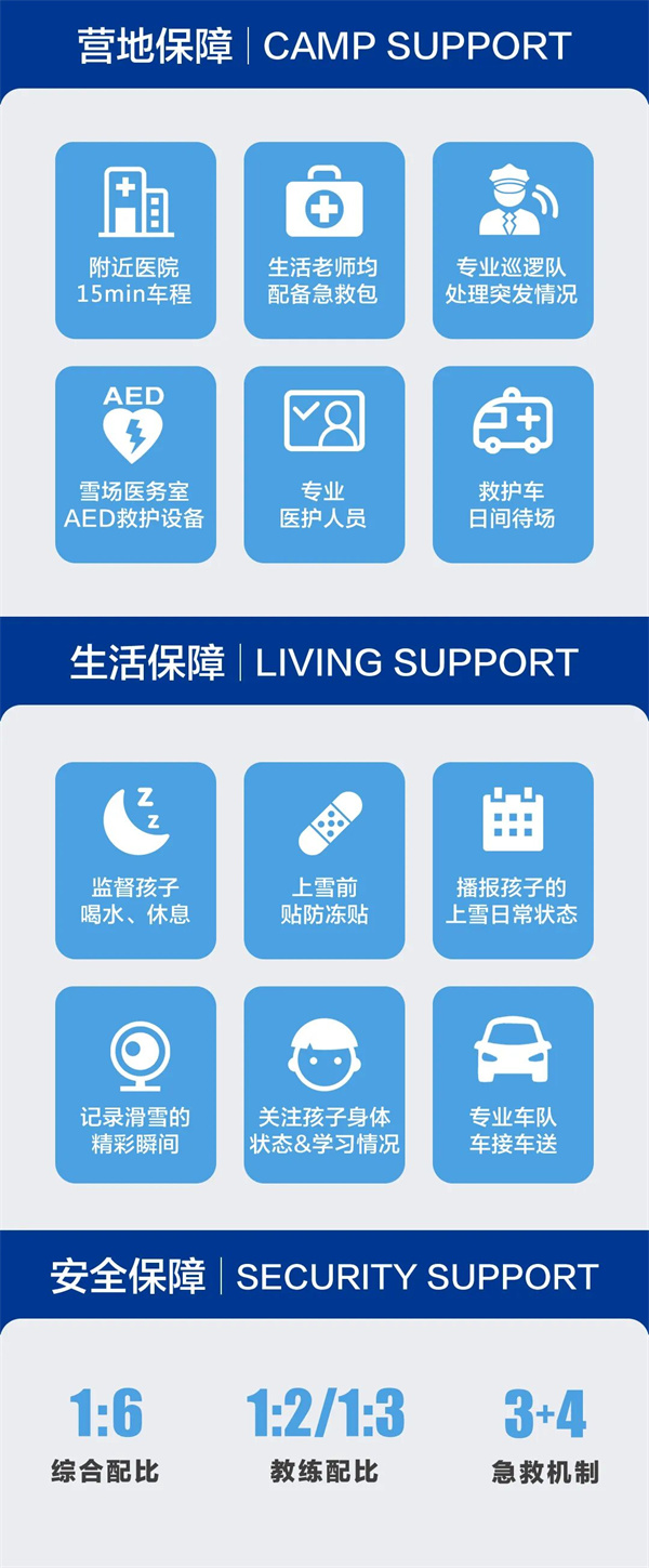学院从生活、医疗、交通、保险五个方面周全考虑,既能在满足孩子们滑雪学习需求的同时,又能从多角度保障营员安全。