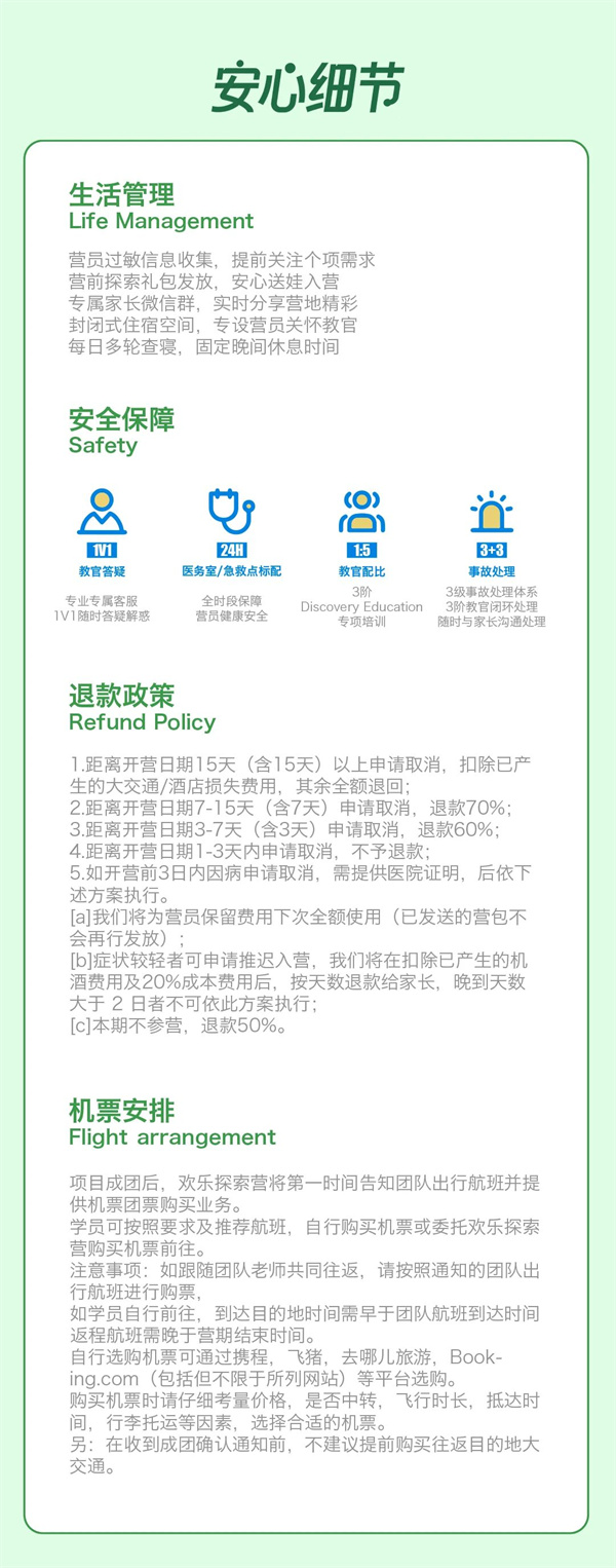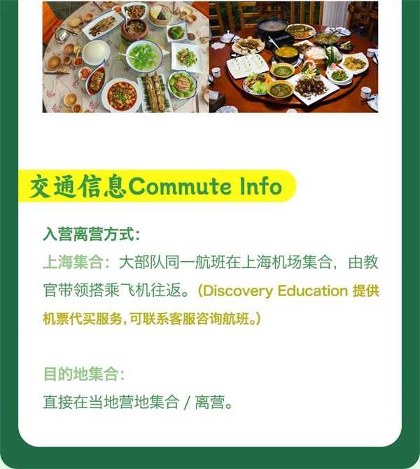 上海集合:大部队同一航班在上海机场集合,由教官带领搭乘飞机往返。(Discovery Education 提供机票代买服务,可联系客服咨询航班。)