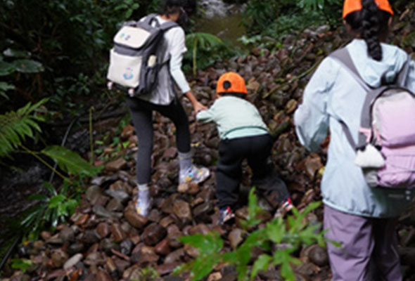 脱下鞋子,跟着孩子一起趟溪、淋雨,
