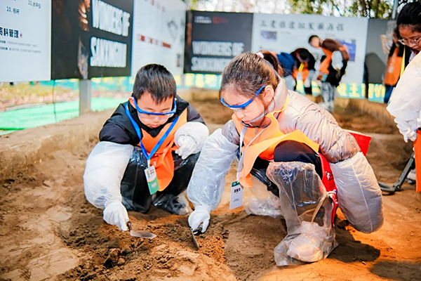 在真实复原的考古坑中,亲手操作手铲、刷子等专业工具,经历从勘探定位到文物提取的全流程,体验考古发掘
