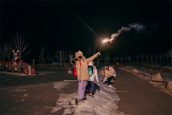 夜幕降临,雪地烟花在夜空绽放,绚烂火光映照着白雪皑皑的大地,孩子在欢声笑语中感受东北年俗的热闹与温情,“团圆、祈福”的传统文化也深深的印记刻在了孩子的心里。