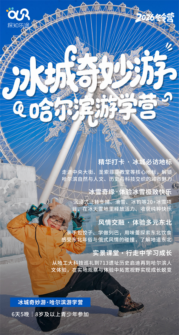 「黑龙江研学」2026冰城奇妙游·哈尔滨游学冬令营(6天)走进真实的北国雪域,解锁冰雪、历史、美食