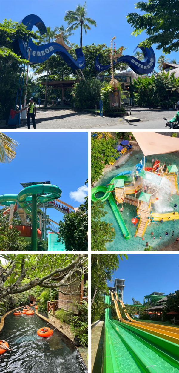 巴厘岛【Waterbom水上乐园】,被Tripadvisor将其评为亚洲领先的水上乐园,也是水上滑梯的狂热爱好者必打卡地。园内有各种各样的大滑梯、水滑道、游泳池和游乐场,12道一关比一关刺激的巨型滑水道、250米长的懒人漂流河。每个项目都有温馨提示,上面写着速度和惊险程度,如果胆子不够大可以尝试大喇叭一类休闲欢乐的项目,懒人漂流河沿岸种植着热带雨林特有的植物,从惊险刺激的滑水道到轻松愉快的漂流河,玩一整天都不够。