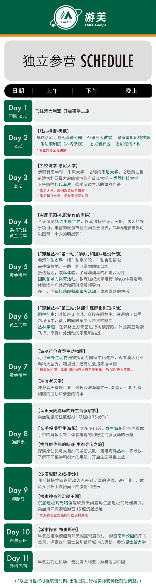 7、活动期间遇人力不可抗拒因素(如天气原因,政府管控等情况)造成航班变化,营地活动内容变化。所产生的损失由家长承担。
