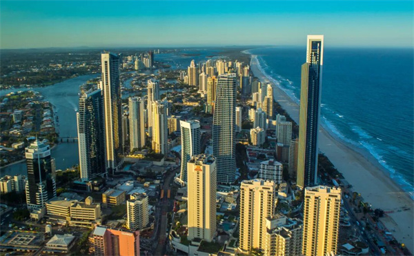 澳大利亚黄金海岸(Gold Coast),位于昆士兰州南部,拥有绵延42公里金色沙滩海岸、多个世界级的主题公园和购物商场,是冲浪和滑水的理想场所,也是世界人民的度假胜地。