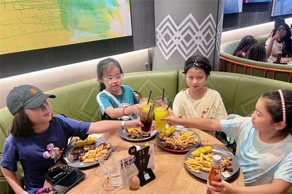 早餐为酒店早餐,午餐及晚餐为中餐或西式简餐,团餐(八菜一汤)或特色餐,一日三餐,尽量做到菜品的营养和口味均衡搭配。关于不同的宗教禁忌及过敏等问题,我们会提前与家庭及孩子沟通,确保孩子能够安全愉快地就餐。