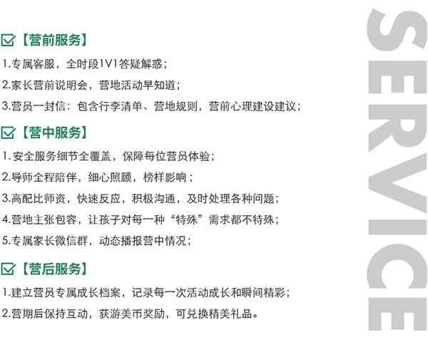 4、活动期间接驳集合/解散时间均需按规定时间抵达或离营,如不能按照规定时间,可协商单独解决,产生的额外费用需家长自理。